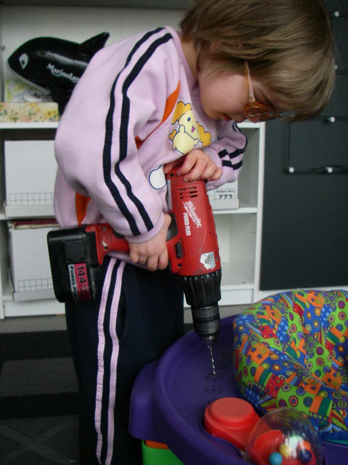 Measure twice and drill once, especially if it's your baby sister's toy
