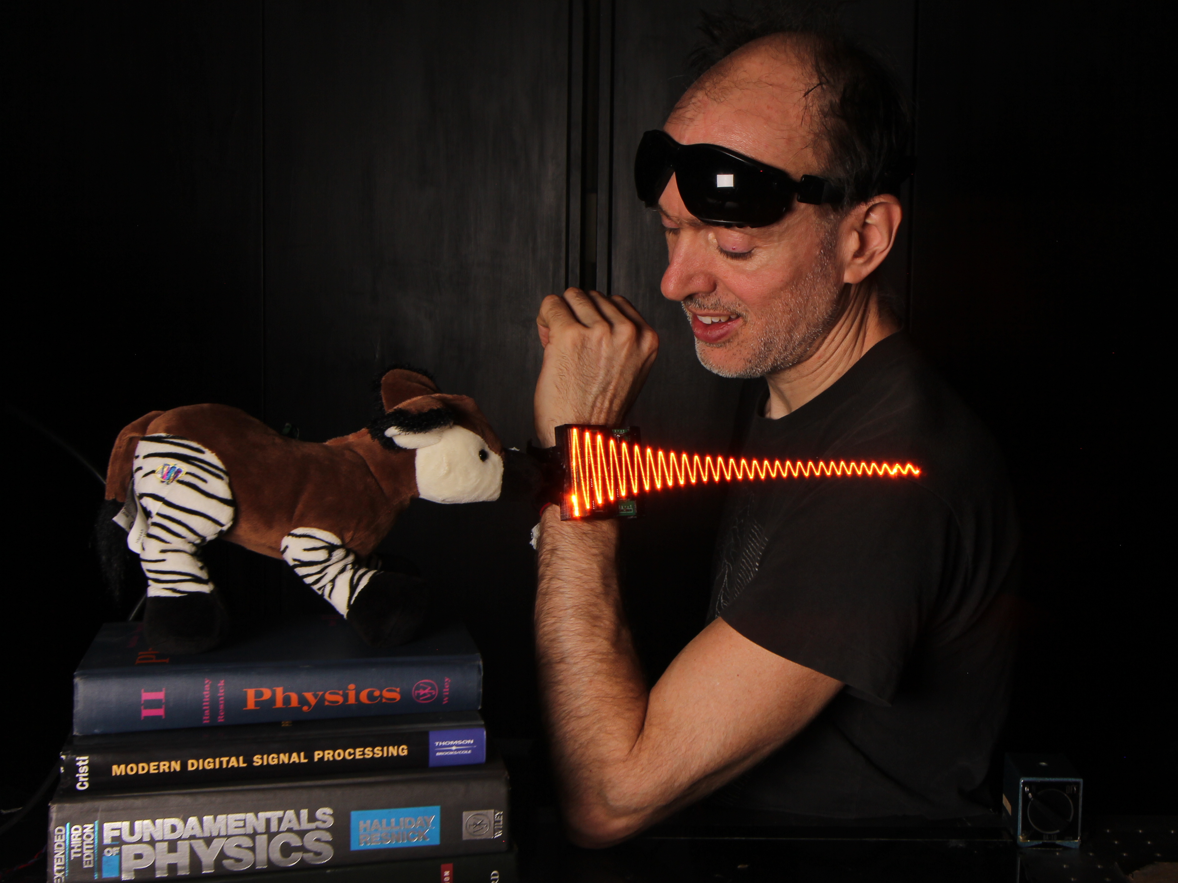 Microphone hidden inside a stuffed toy Okapi: actual measurement and visualization of sound waves it is capable of hearing.
