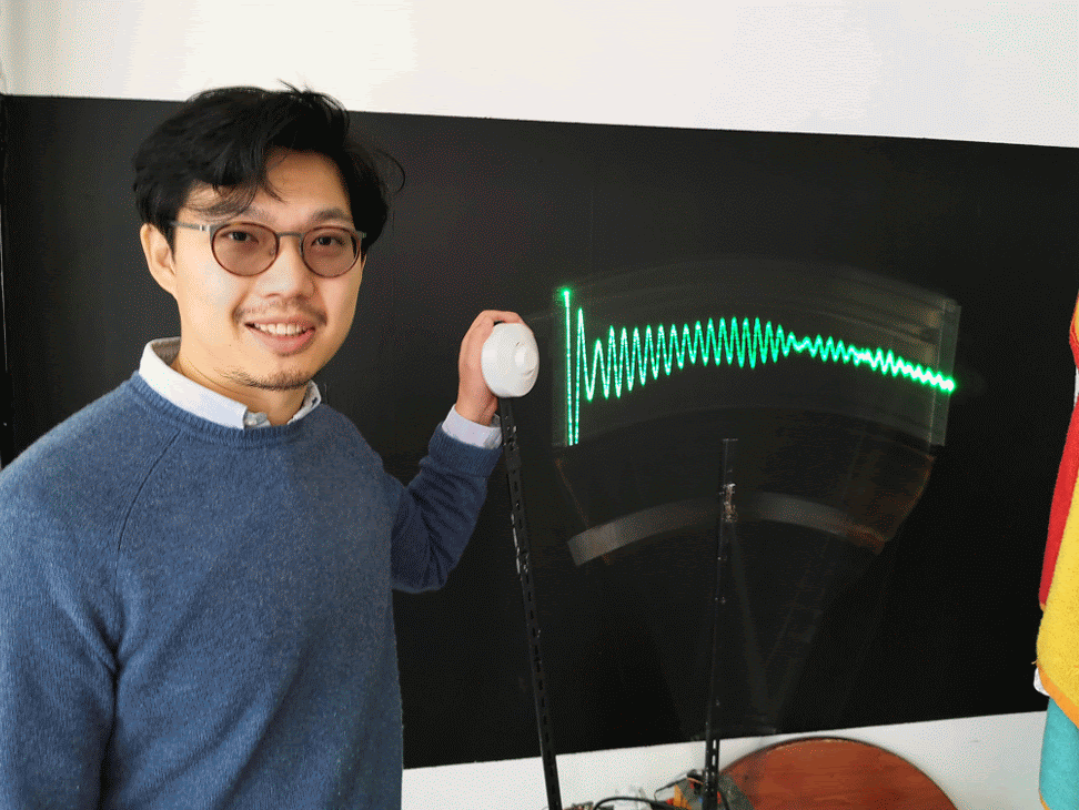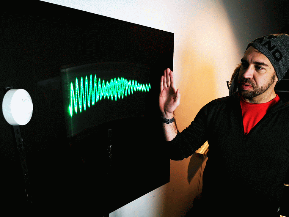 Measuring and seeing the radio waves from a microwave motion sensor, (as a "sitting wave", i.e. in coordinates where the speed of light is zero)