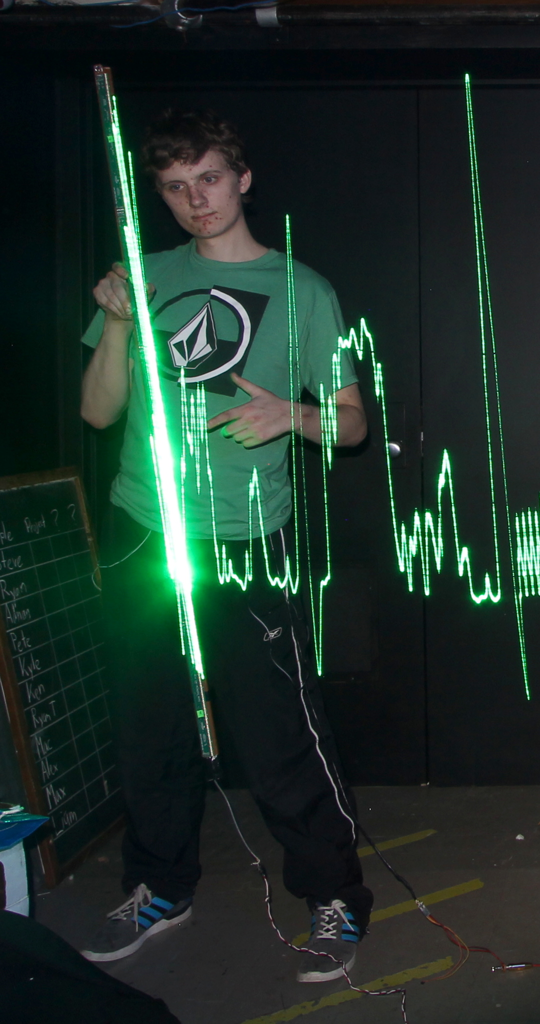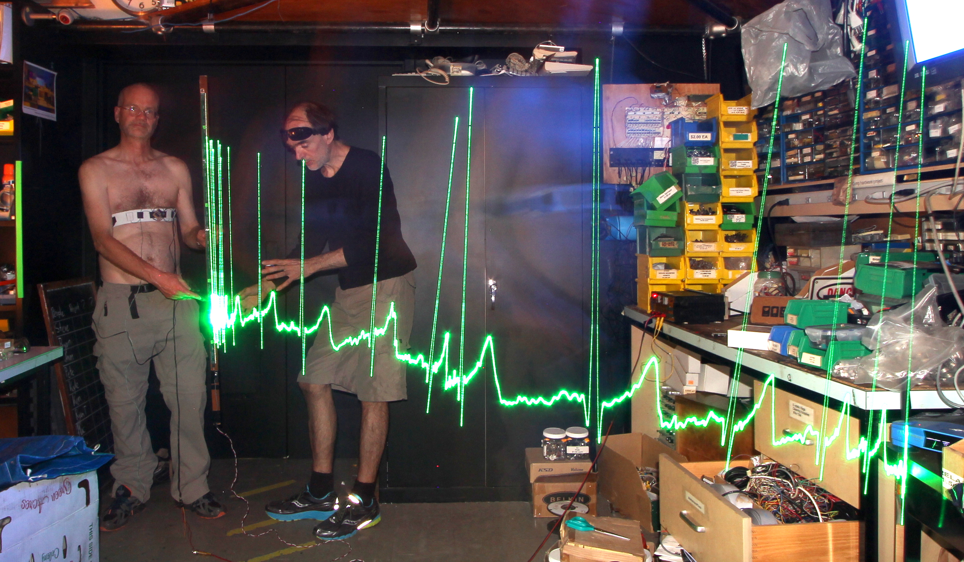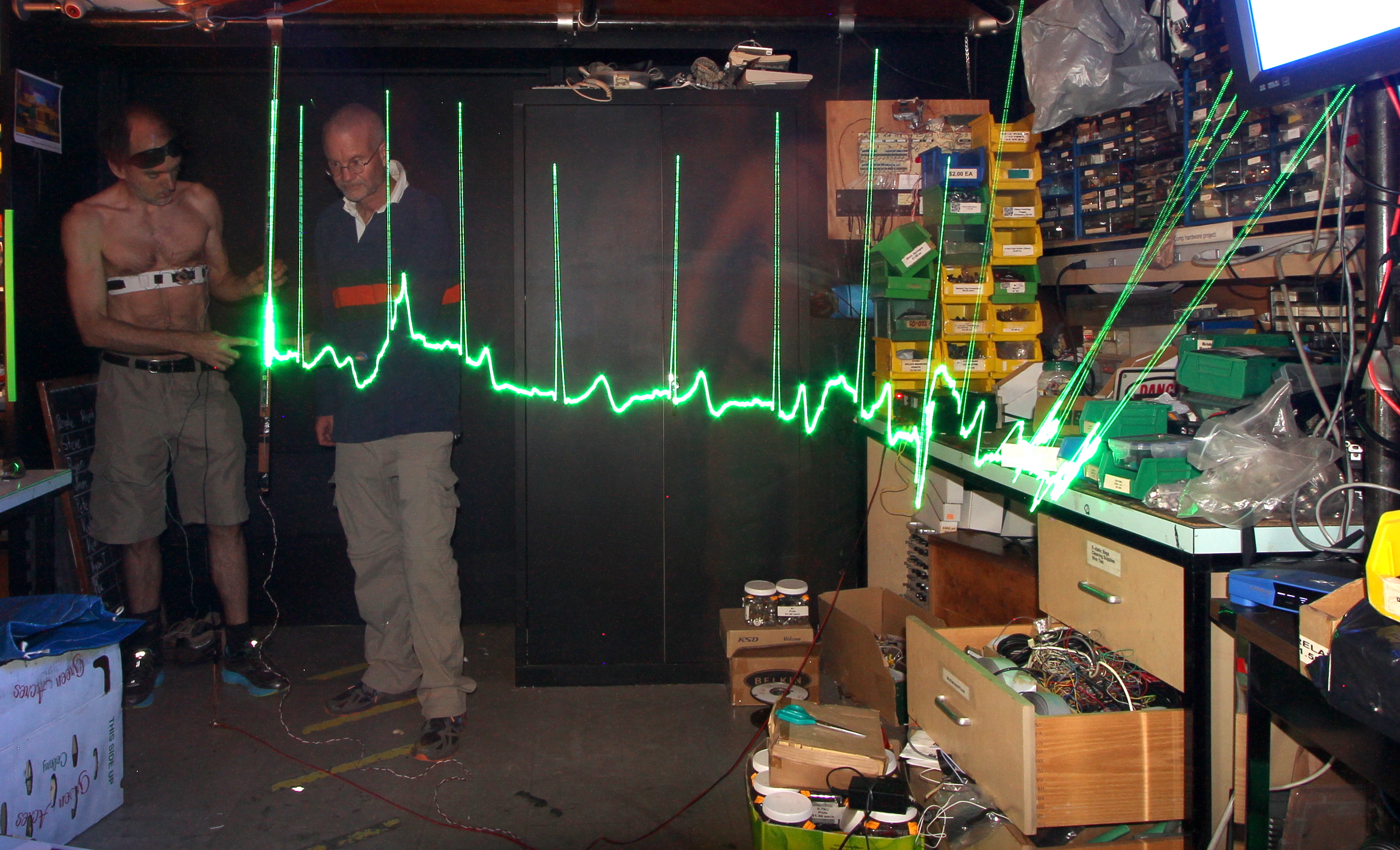 The ECG (Electro Cardio Gram) or ΗΚΓ (Ηλεκτρικά καρδιά γραπτή) waveform is visible on a space-base rather than a time-base. When moving, this creates a physical (phenomenological) augmented reality.