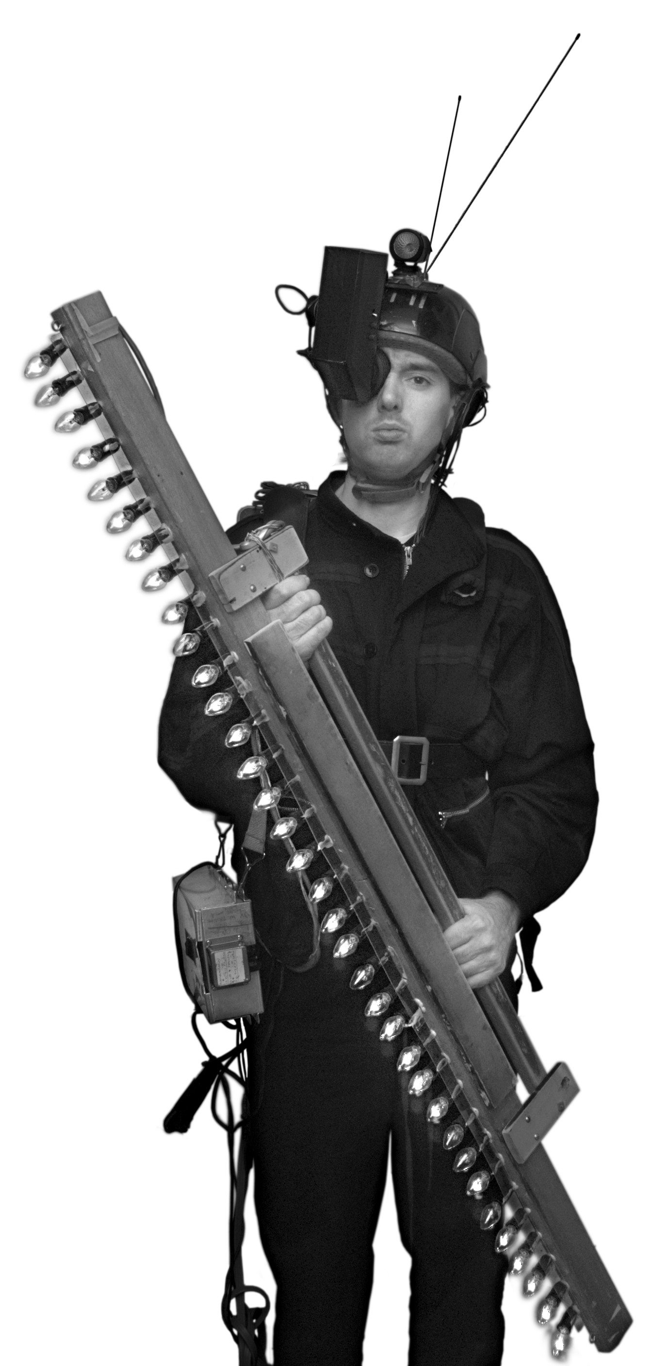 (Steve Mann's PHENOMENAmplifier, visualizing radio waves from a surveillance camera transmitting on TV channel 7, wavelength of 67 inches = 171cm, 1974)