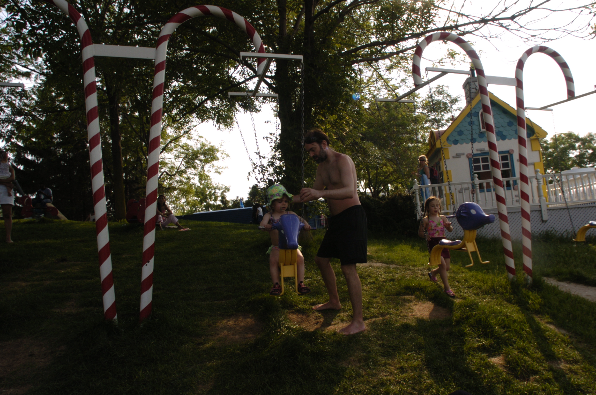 daddy and i played on the swing, and then we went to swim in
