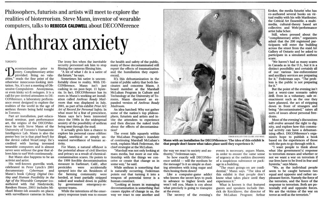 If you are visually impaired, or would otherwise like to see the actual text of the article, rather than a scan of the newsprint, here is an HTML version of the article, but it does not have photograph that accompanied the article. The missing photograph is a picture of the six person body-scanning column shower in the men's washdown room, taken just prior to the event.