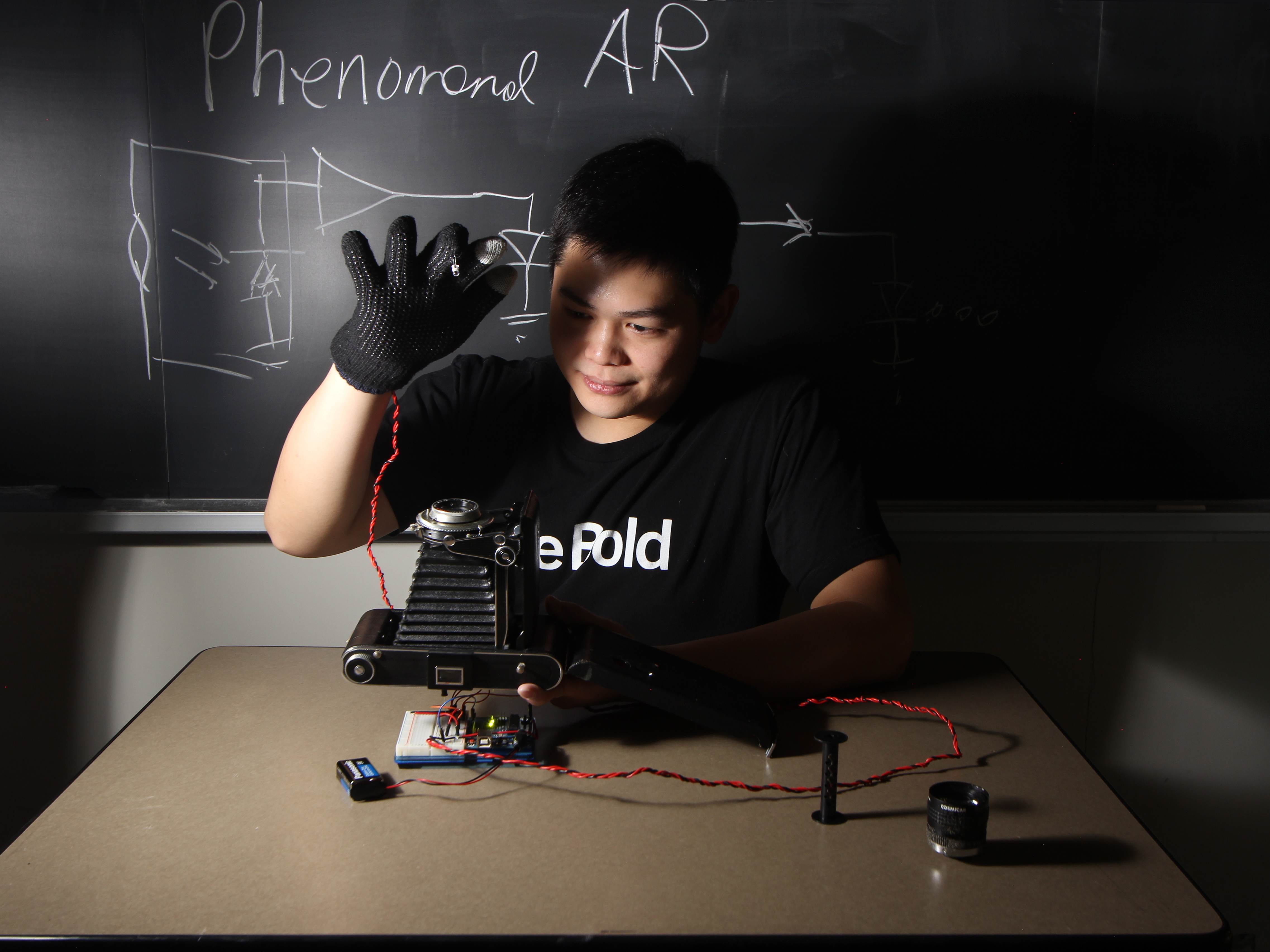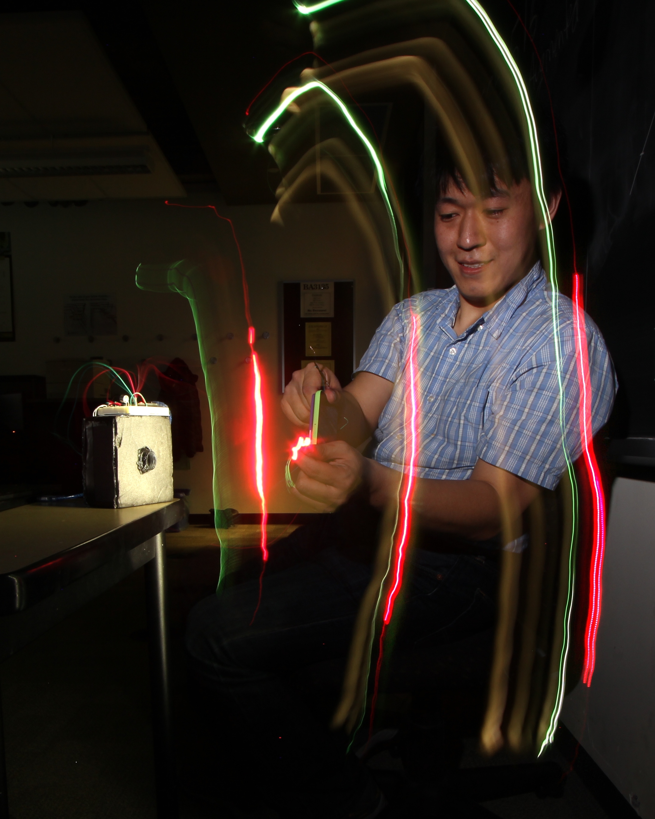 Sen used two lights, one pointing toward the abakographic camera, and the other toward the camera under test: