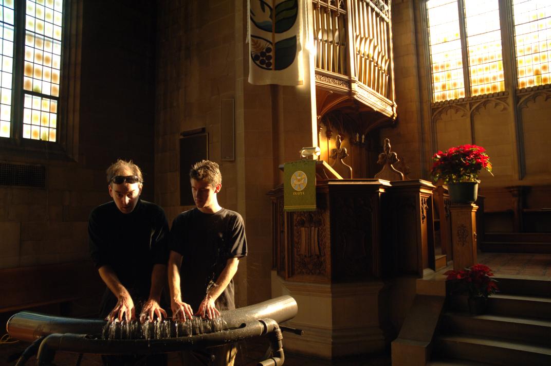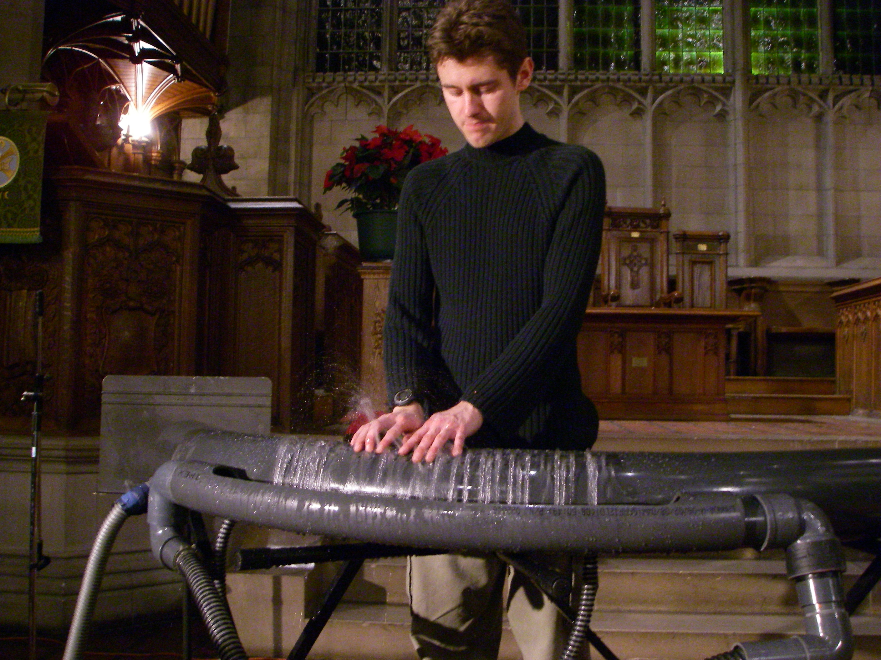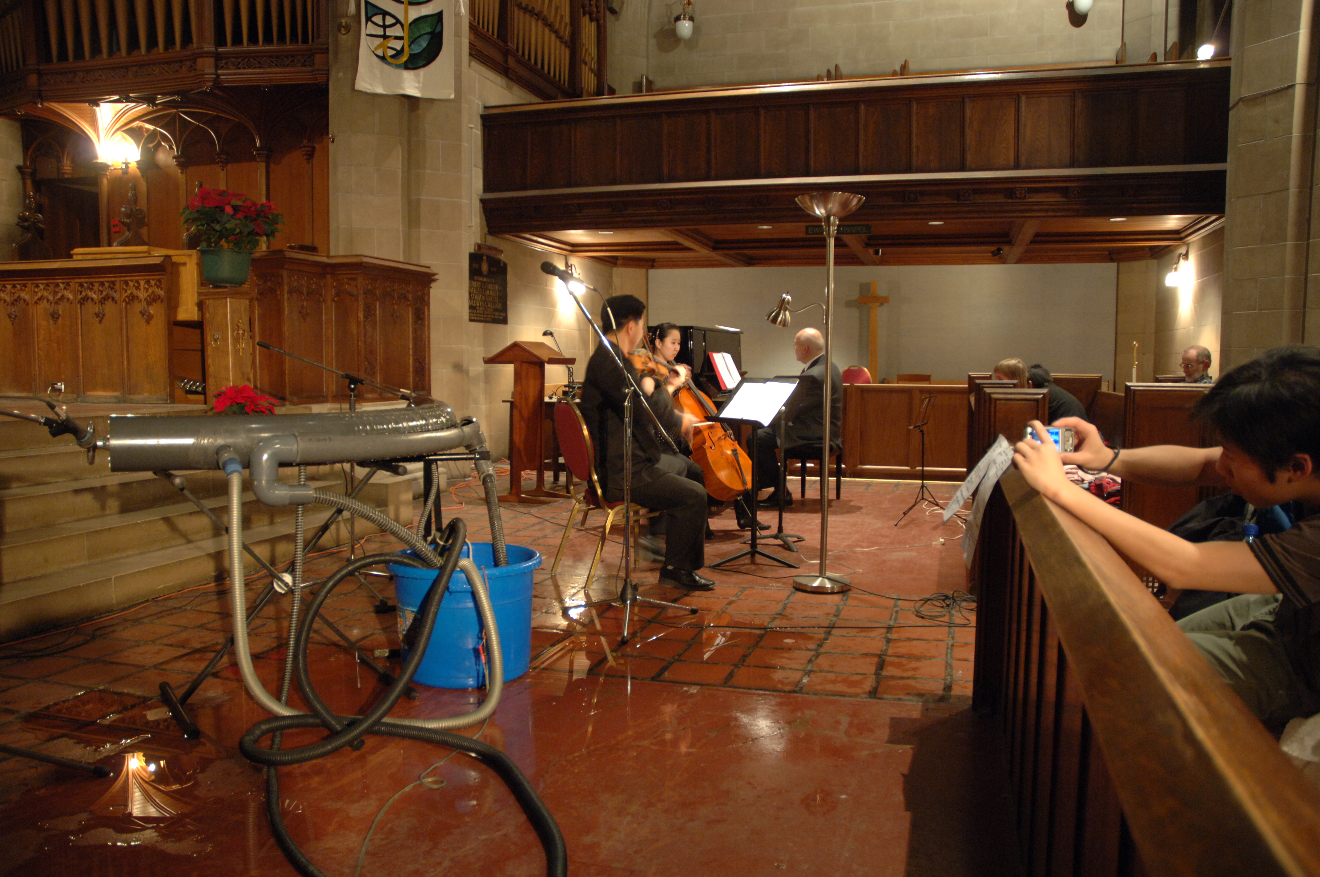 I took some pictures of the hydraulophone together with violin and cello, but it looks kind of strange with nobody playing on the hydraulophone; did anyone else get any others from the beginning when we were playing on hydraulophone with strings players at the same time?