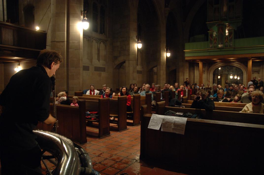 Fortnuately for our daytime audience, the Knox College Chapelwas booked for us starting at 11:00am (originally intended just for setup and practice).