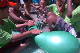 pool, or she can be supplied with water from a garden hose: