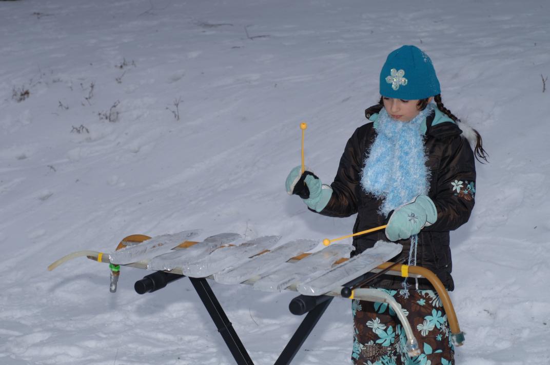 Christina (age 5) builds a pagophone for her skates: