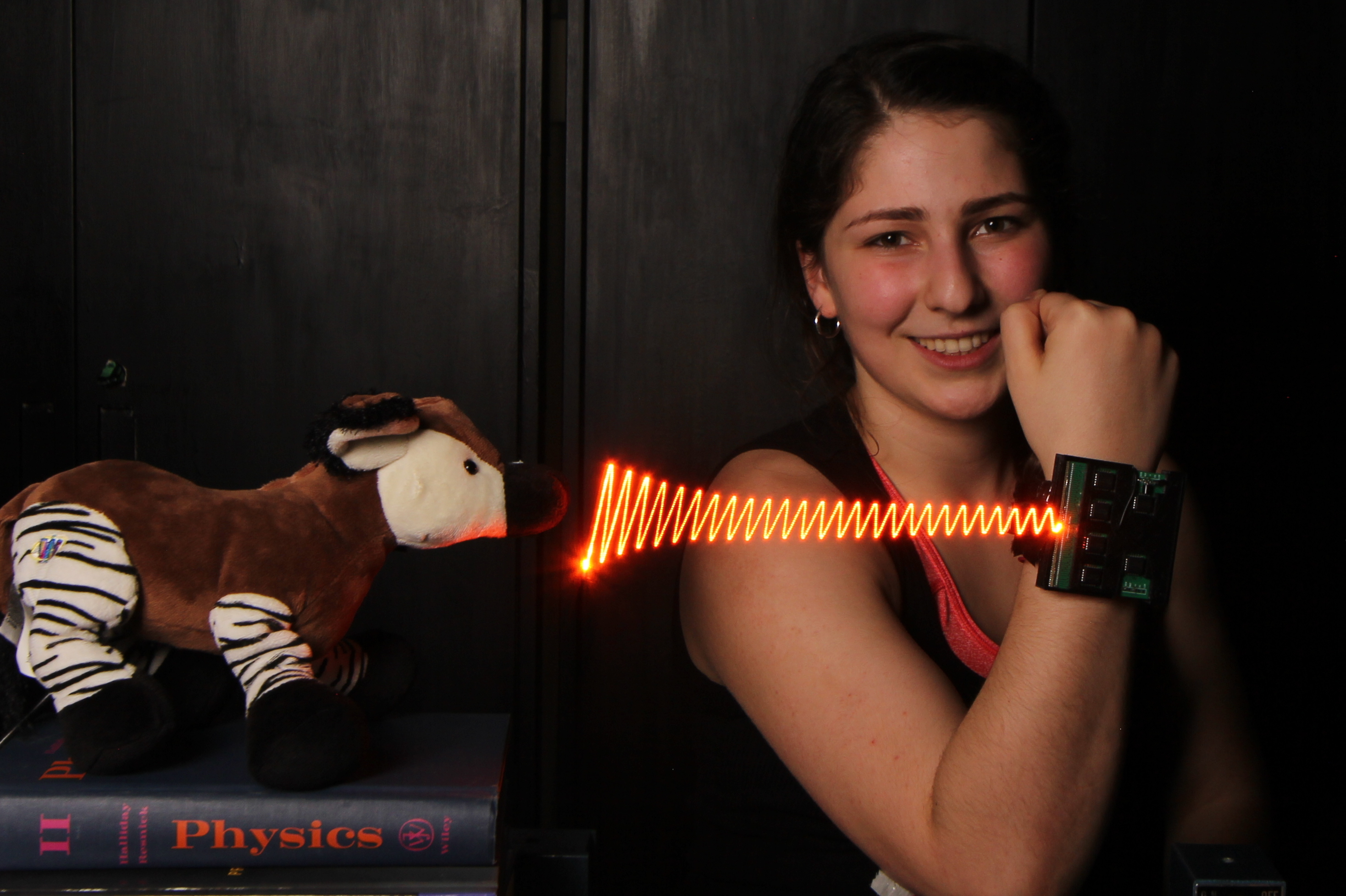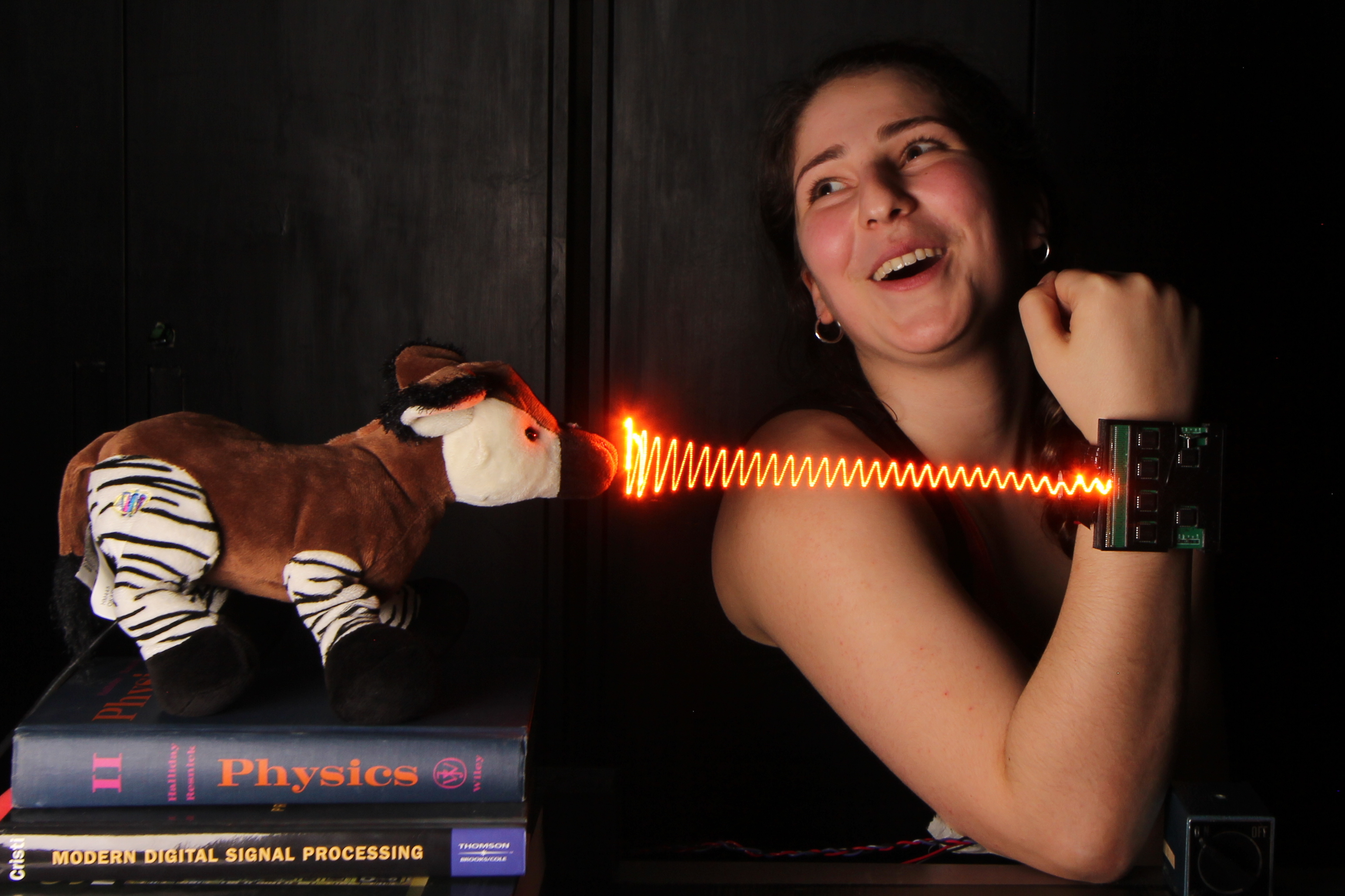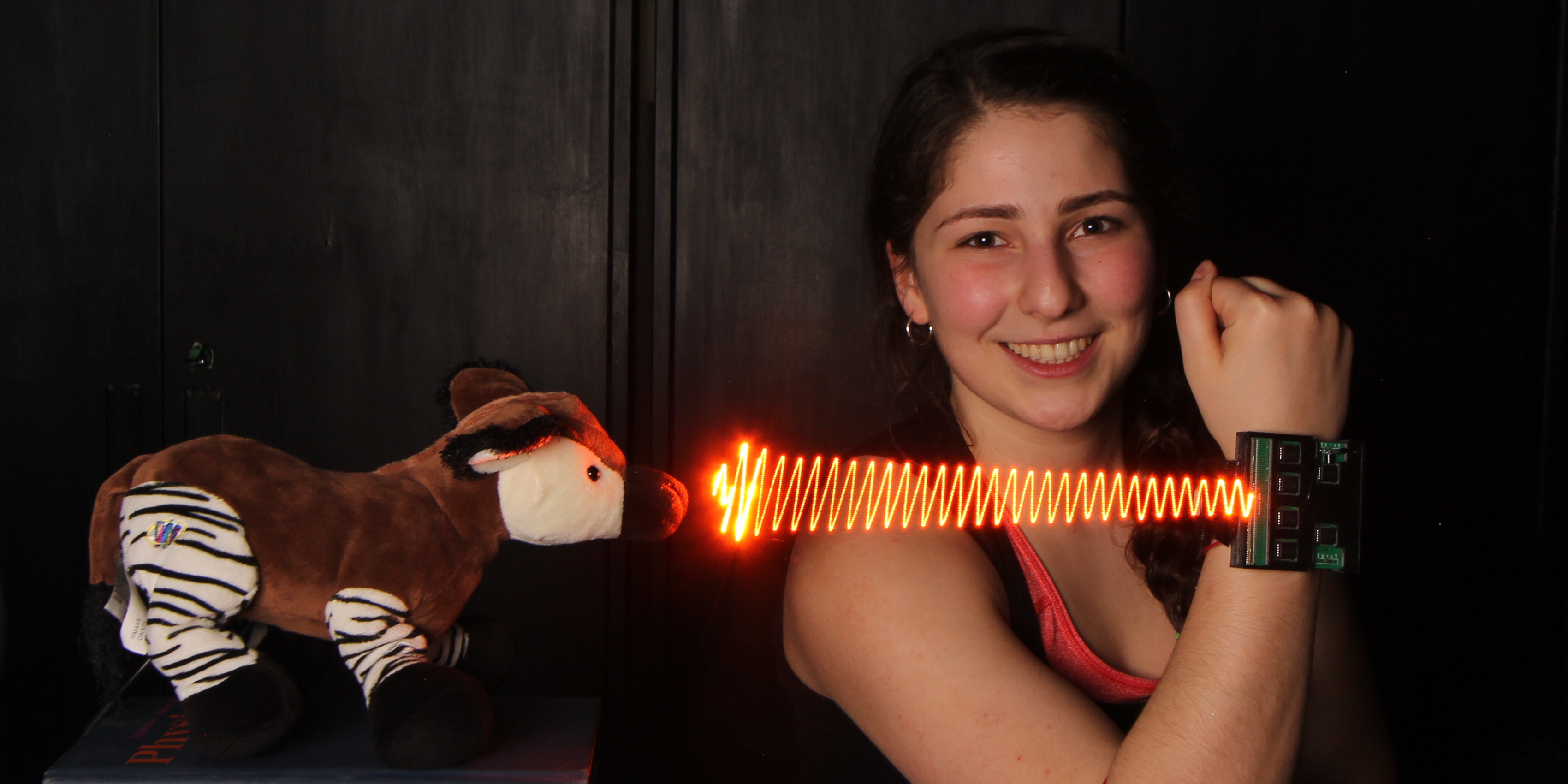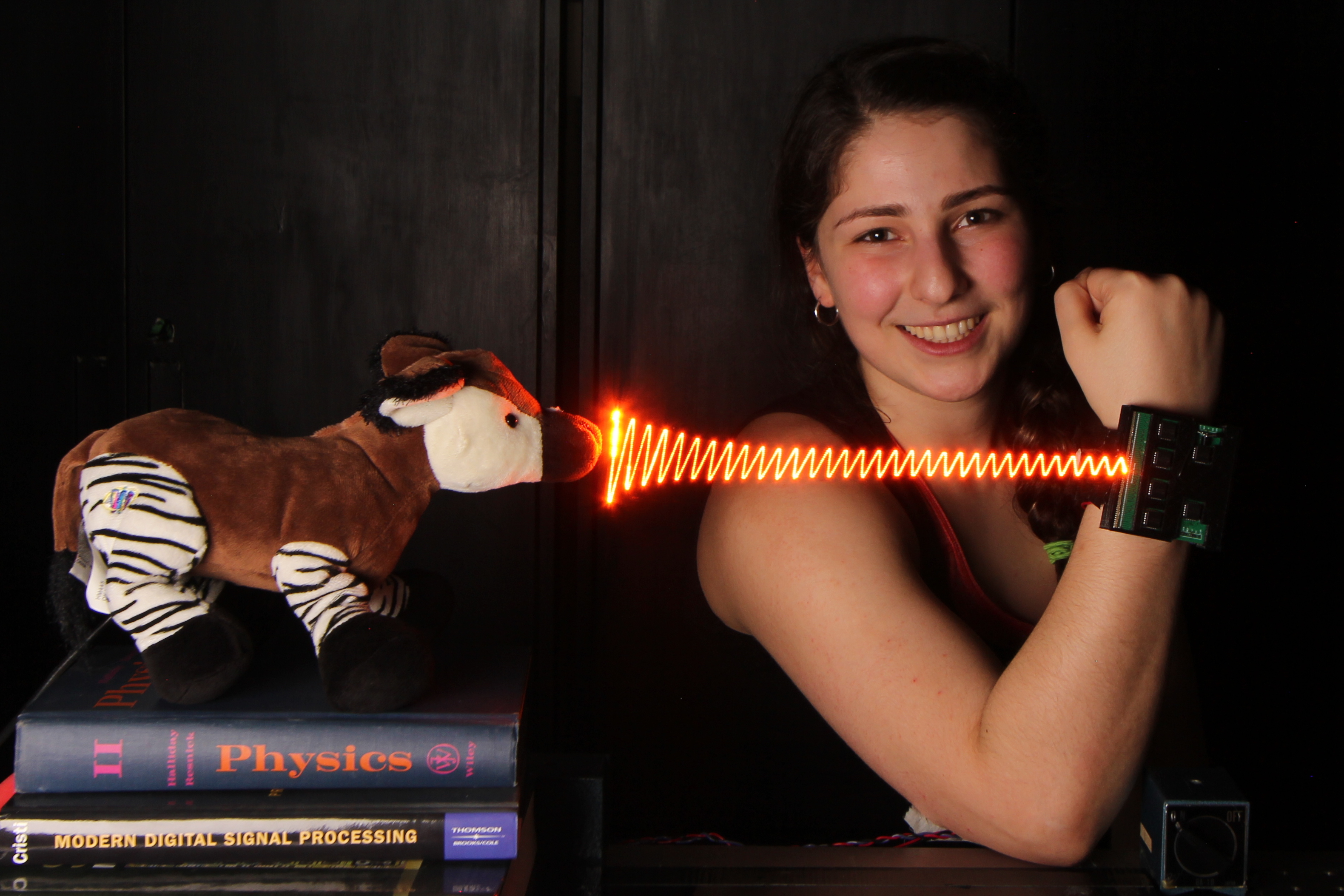 Microphone hidden inside a stuffed toy Okapi: actual measurement and visualization of sound waves it is capable of hearing.