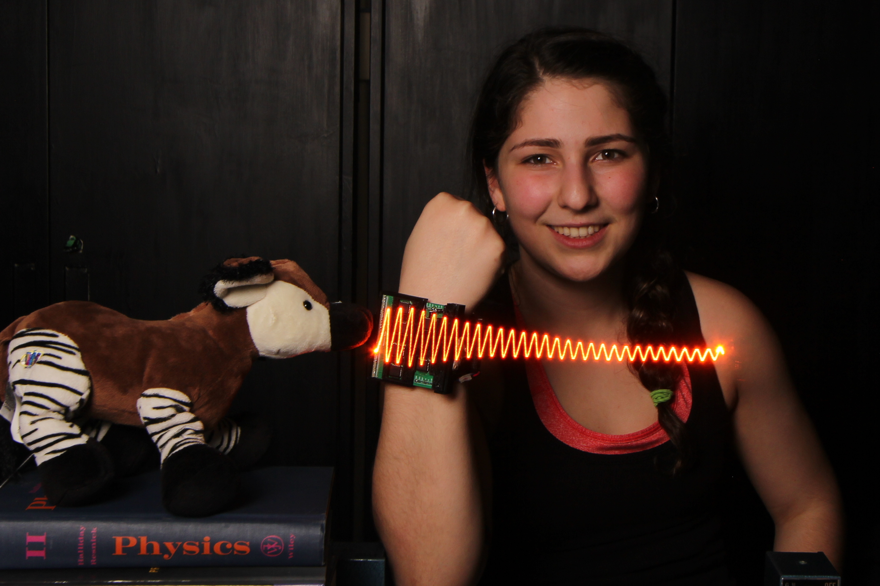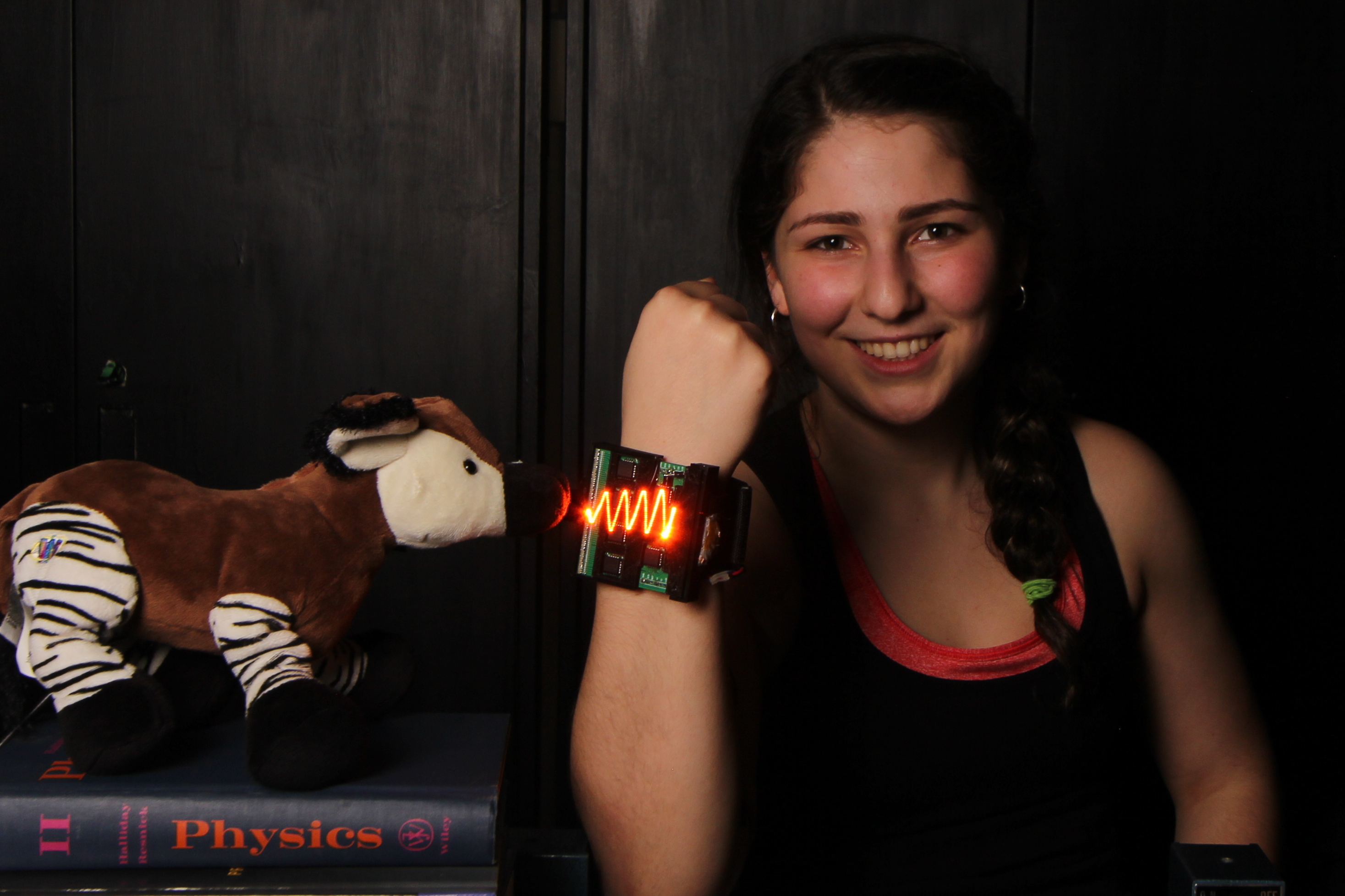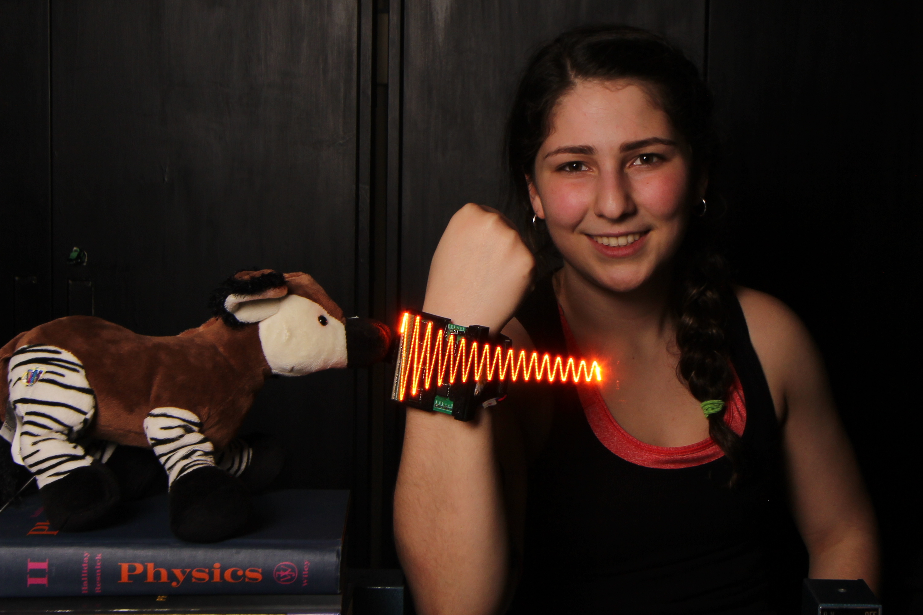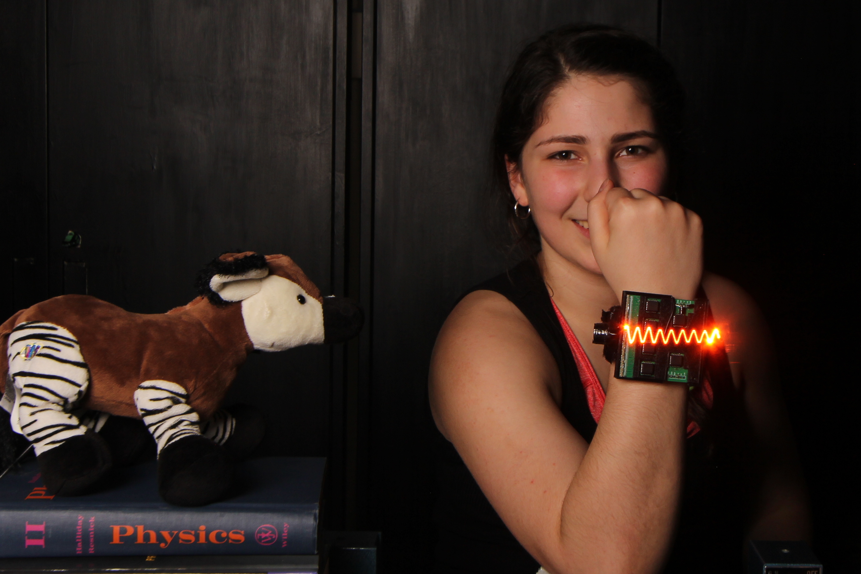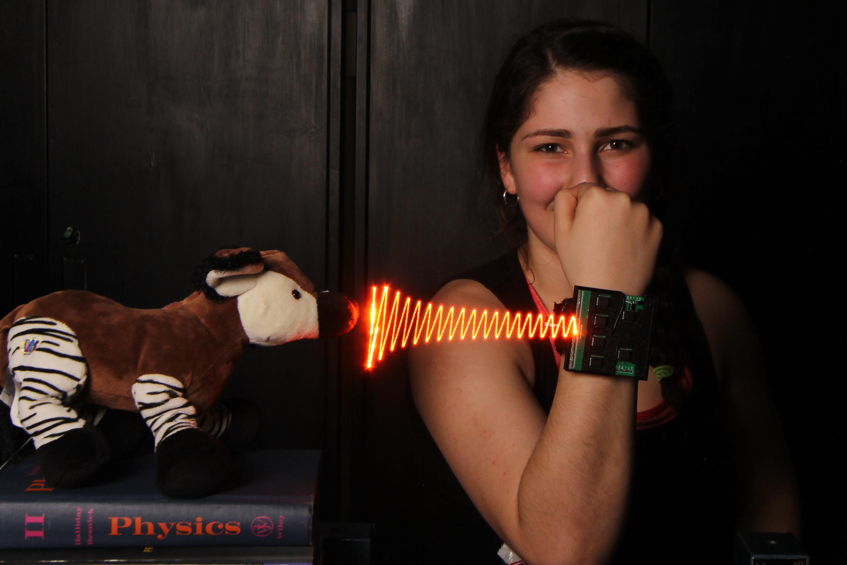Microphone hidden inside a stuffed toy Okapi: actual measurement and visualization of sound waves it is capable of hearing.