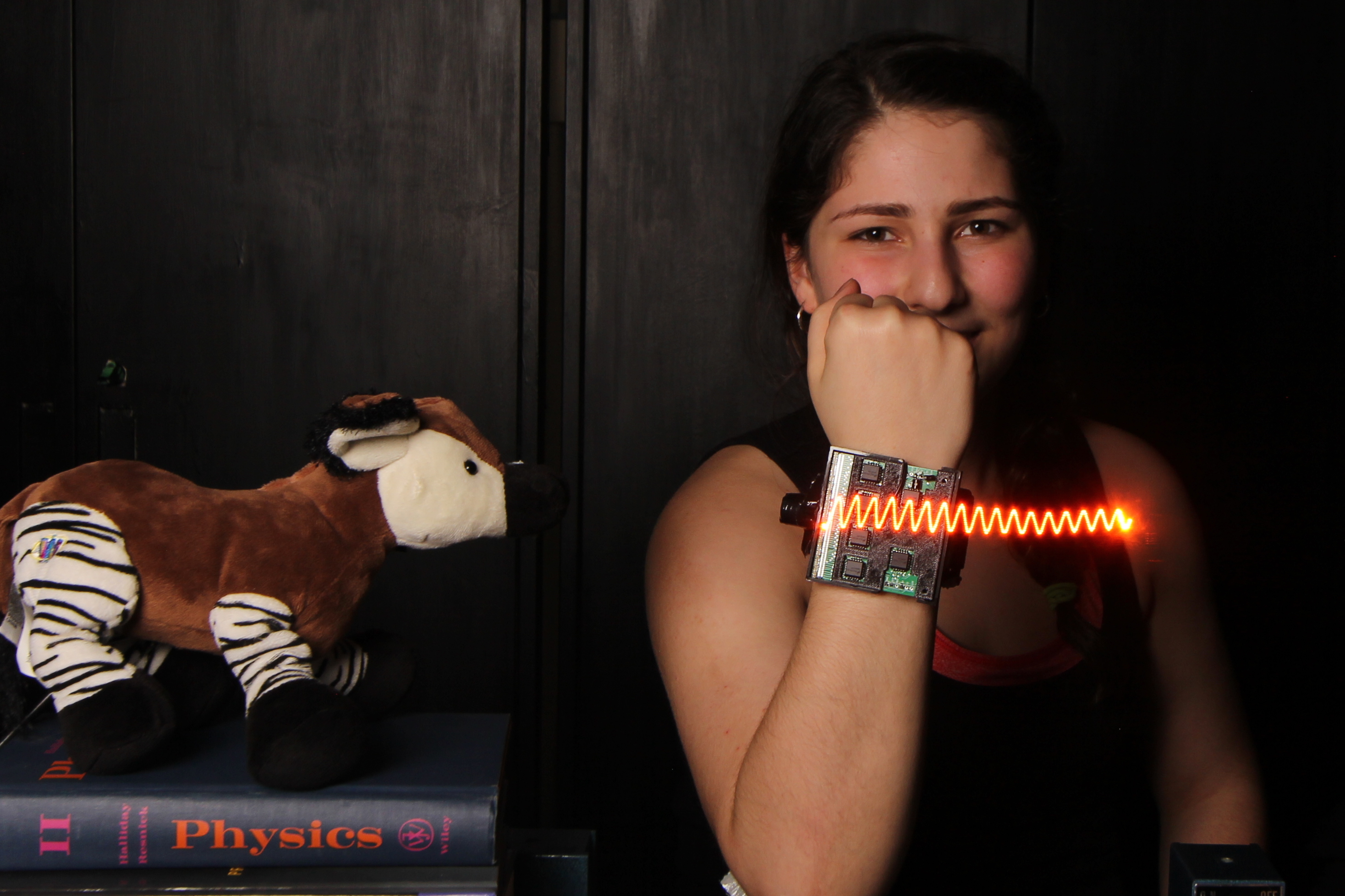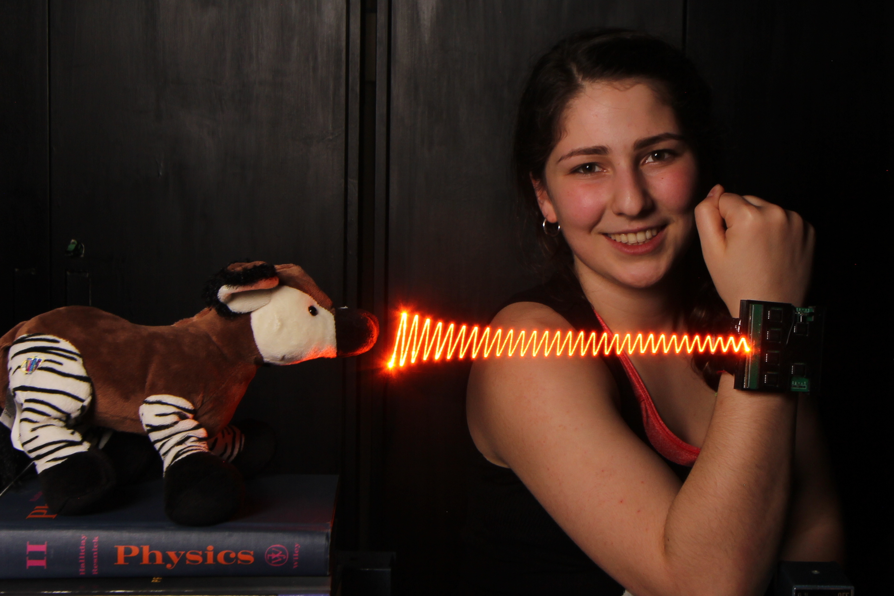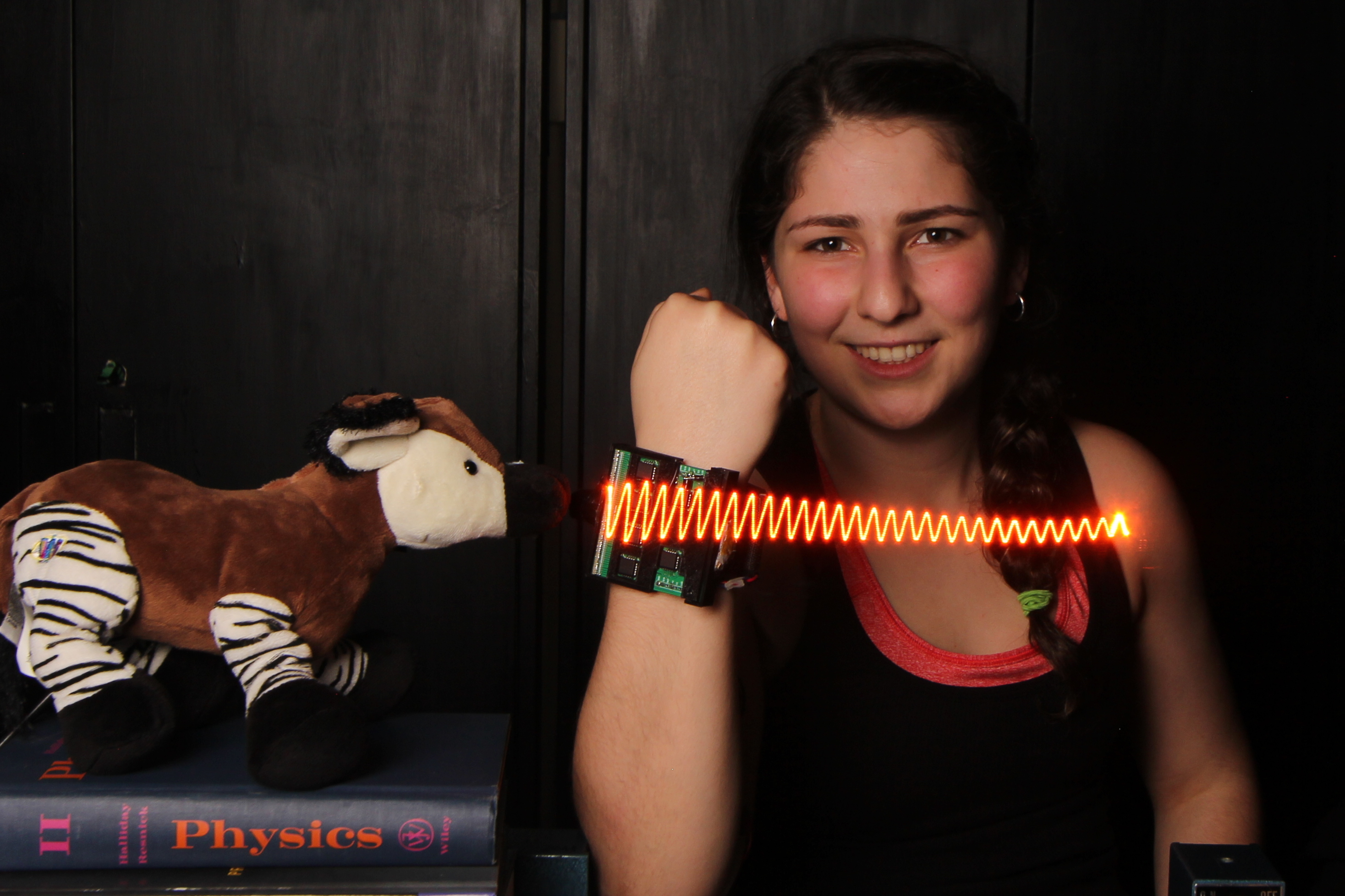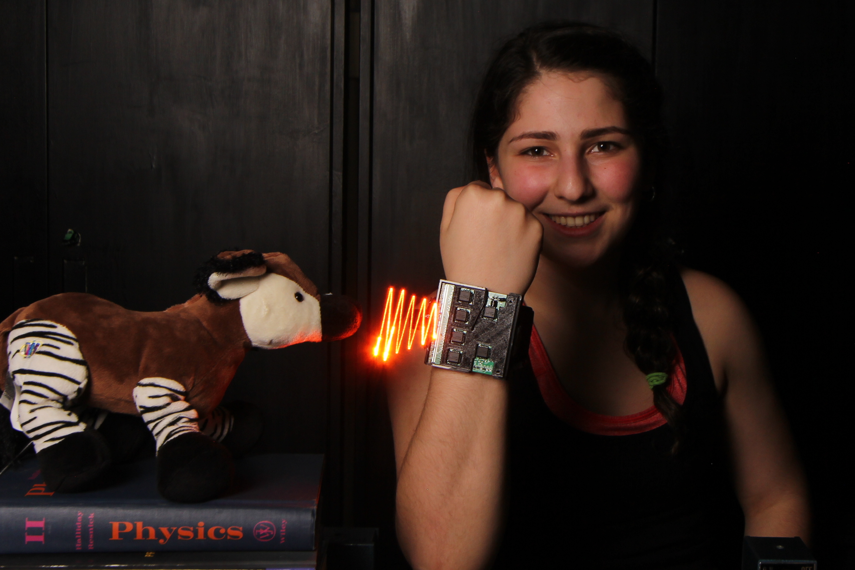 Microphone hidden inside a stuffed toy Okapi: actual measurement and visualization of sound waves it is capable of hearing.